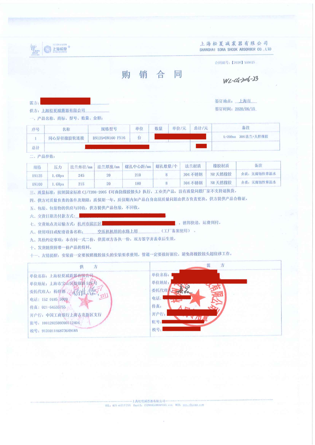 【空气压缩机机组配套】上海松夏DN125*100同心异径橡胶接头合同介绍: